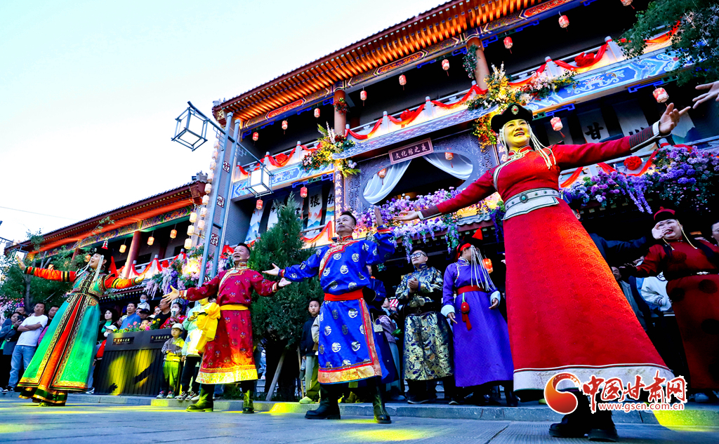 5月23日傍晚,張掖市甘州區(qū)甘州府城內(nèi)游人如織。內(nèi)蒙古阿拉善右旗烏蘭牧騎及裕固族、藏族歌舞演員,帶來特色的歌舞表演,皮影戲、面塑等非遺項(xiàng)目同步亮相。悠揚(yáng)琴聲、優(yōu)美舞姿與靈巧技藝交織,為甘州府城文旅項(xiàng)目增添濃厚文化氛圍,讓游客沉浸于別樣的游玩體驗(yàn)。