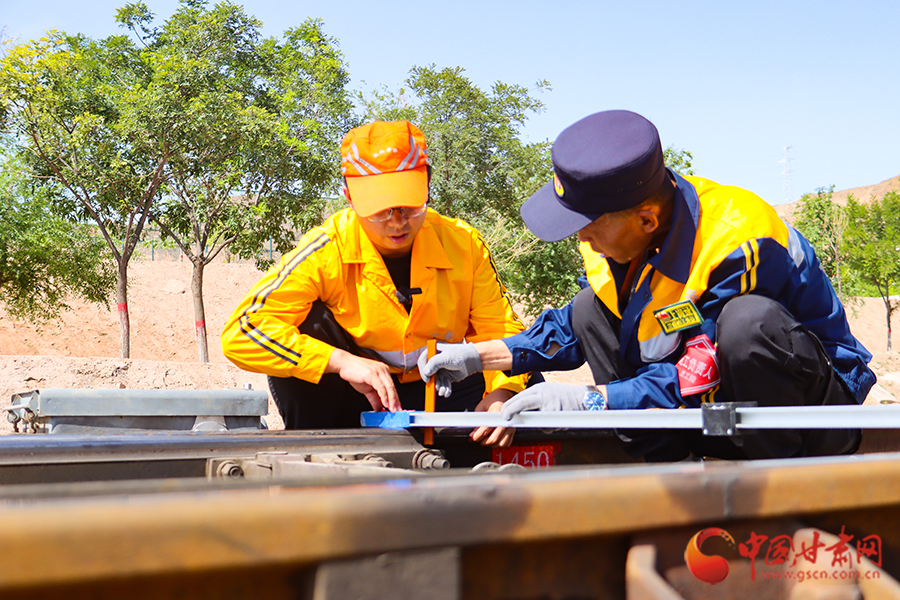 “道岔、絕緣接頭和小半徑曲線是我們日常高溫巡查的重中之重,如果檢查不到位,有時候幾毫米都可能影響軌道電路或道岔搬動,進而影響安全運輸,所以必須做到一絲不茍,絕不能讓設備帶‘病’堅守。”在檢查到絕緣接頭和道岔尖軌時他們檢查的格外仔細。