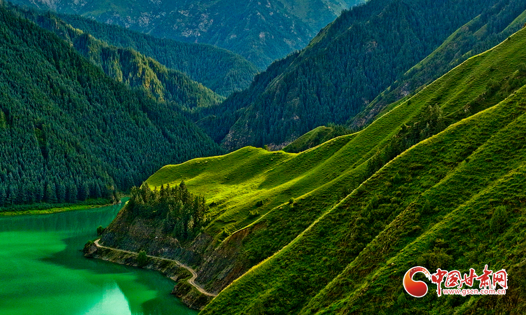 8月8日一場(chǎng)小雨過(guò)后,祁連山國(guó)家公園甘肅張掖市民樂(lè)縣海潮壩段,群山環(huán)抱。綠意蔥蔥的原始森林中蒼松翠柏聳立,黑河水與碧綠的草原、山林相映成趣,共同勾勒出一幅國(guó)家公園的秀麗畫(huà)卷。