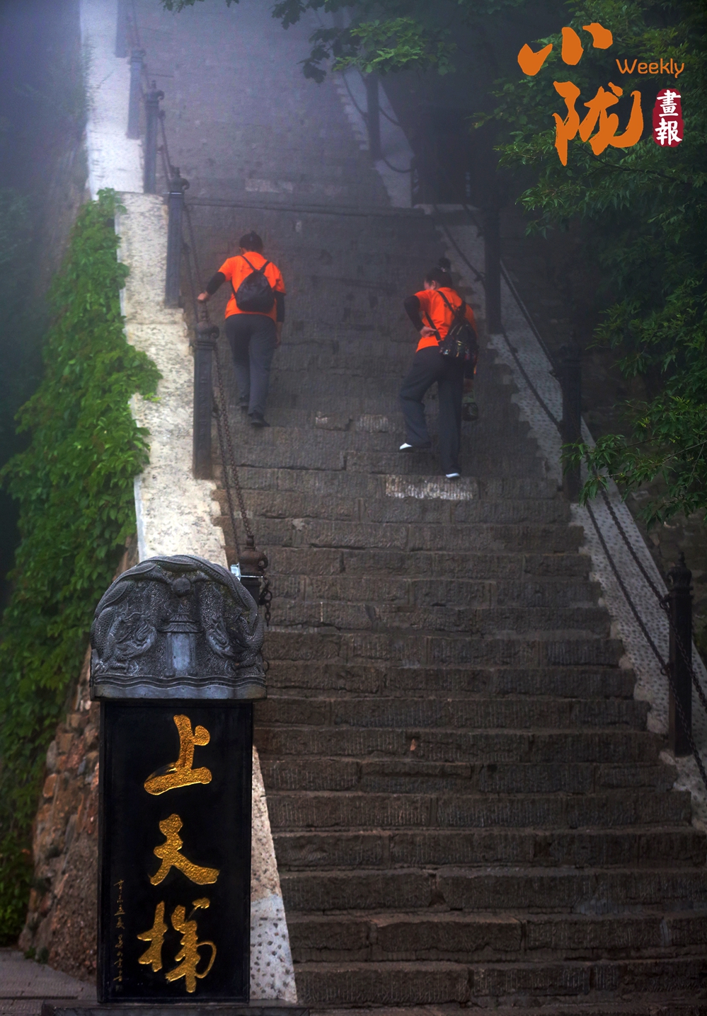 云霧繚繞,山水與寺廟隱現(xiàn),營(yíng)造出神秘且令人向往的視覺(jué)效果。站在半山腰,背靠懸崖,深邃不可見(jiàn)底,不禁生出“山登絕頂我為峰”的豪情。然而,世間萬(wàn)物,瞬息萬(wàn)變,是否成為峰巔之巔又何妨?