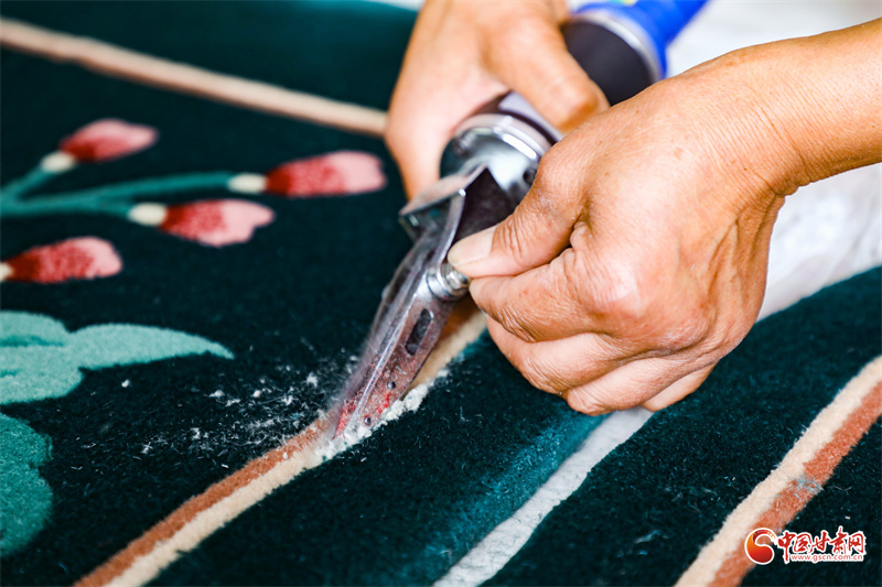 手工地毯,是環(huán)縣非物質(zhì)文化遺產(chǎn)之一,已有近半個世紀的傳承,慕粉萍從事這項技藝也有30多年了。