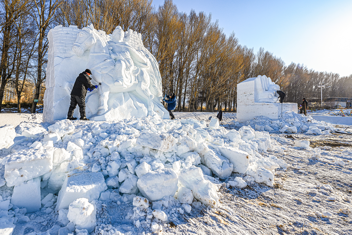 中國(guó)甘肅網(wǎng)1月13日訊 據(jù)嘉峪關(guān)日?qǐng)?bào)報(bào)道(融媒體中心記者 李巍 攝)揚(yáng)鏟塑造型,落刀雕精彩。1月10日,懸壁長(zhǎng)城腳下,《昭君出塞》《九尾靈狐》《喜財(cái)神》等雪雕作品,在匠人們的精雕細(xì)琢中漸漸揭開(kāi)“面紗”。