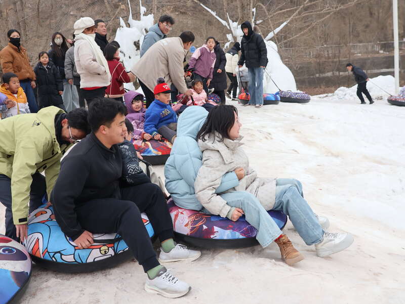 “冰雪之約,暢游遮陽(yáng)”冰雪嘉年華現(xiàn)場(chǎng),成年游客重拾童趣。中青報(bào)·中青網(wǎng)記者 王豪/攝