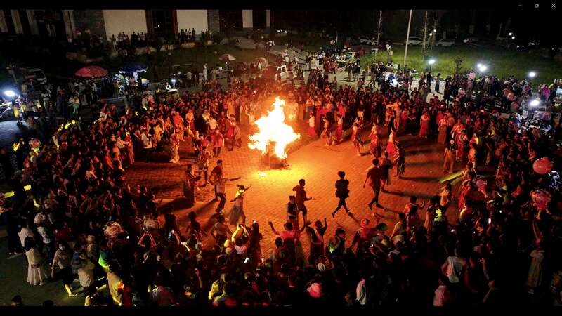 2025年7月,西北師范大學(xué)師生實(shí)踐團(tuán)在新聯(lián)村舉辦篝火晚會(huì)。受訪者供圖